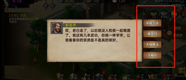 2、武功学习,有很多的武功刀法可以学习,通过不断的强化来提升自我的实力等级。