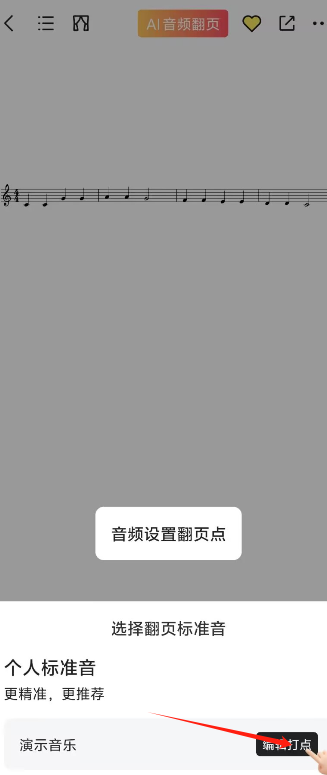 2、用户需要选择翻页标准音模式,点击编辑打点,即可在核实的位置新增翻页点,满足用户个性化需求。