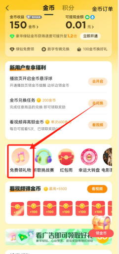 3、通过做任务可以得到大量的金币,可用金币来兑换不同时长的绿钻,兑换后就可免费听歌。